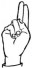На ћирилици написано РАДОВАН ОГЊЕВИЋ састоји се из 14 слова [?]. Исписано ћириличном једноручном азбуком за глувонеме:
